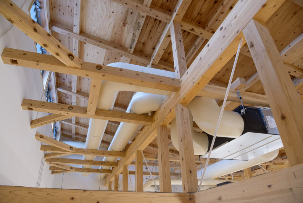 屋根上断熱をすることで構造を表しにすることが可能になっています。