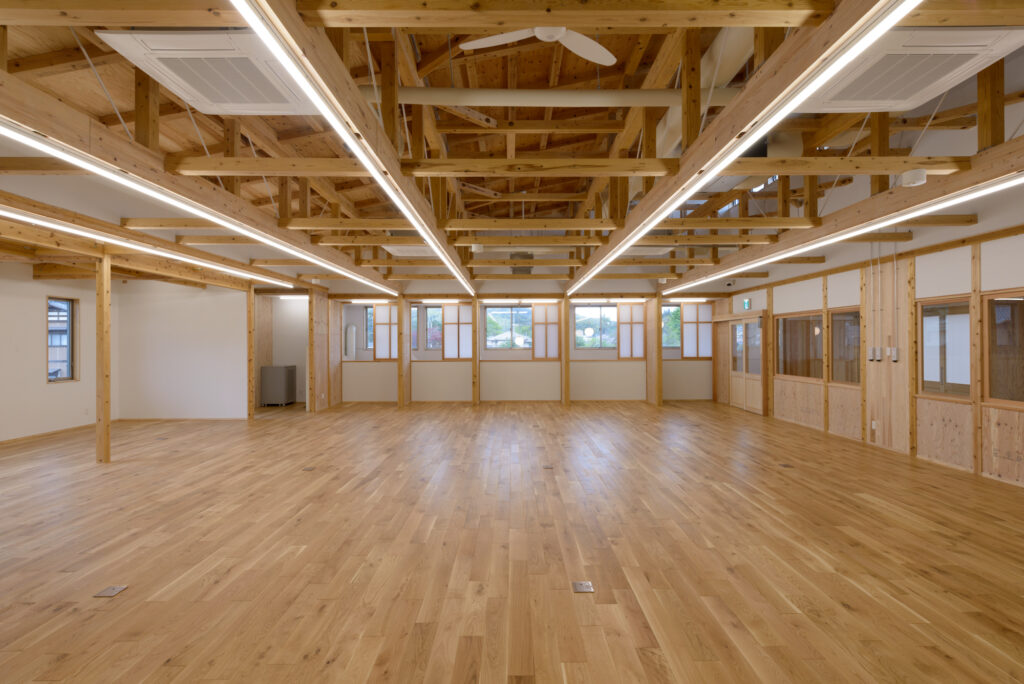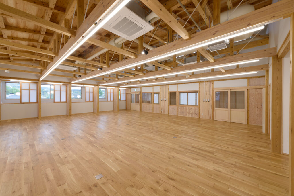 このコミニュティーホールは社員の集いの場所であるとともに地域のコミニューティーに開放できる場所となっています。